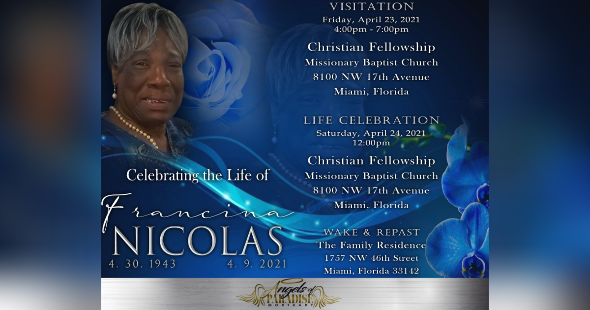 Obituary For Francina Nicolas Angels Of Paradise Mortuary